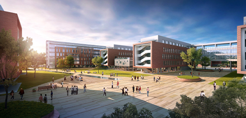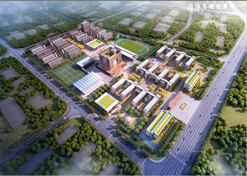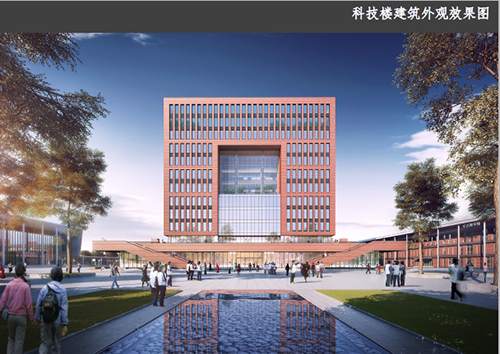 该项目用地位于商丘市的西北侧,其所处位置为商丘市城市总体规划的道北发展片区,形态呈梯形四边形,东临20 米城市规划路(清泉路),南侧为54 米现状城市道路(建设路),北侧为40 米城市规划路(水源路),西侧为30 米城市规划路(邓斌路),地块内部存在一条20 米建议性规划道路(秦燕路)。地块用地平坦,交通便利。 本次设计为商丘市回民中学规划建筑设计项目。功能主要由对外开放地下停车场、风雨操场、食堂、宿舍、学术报告礼堂、专用教室、普通教室、实验室、科技楼、综合楼及科普生态园等组成。本次设计地上总建筑面积约21.27 万平方米,地上5-11 层,局部地下1 层,大部分为多层公共建筑。