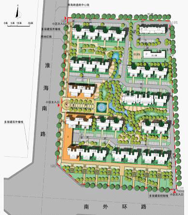 项目类型:居住建筑 设计年代:2009年12月 建设地点:安徽宿州市 总面积:74811 M2 设计说明:宿州市是安徽北大门,黄淮海平原的南端,该地块位于宿州市委市府所在地的埔桥区的淮海南站与南外环路交叉口东北角,这两条主干道都是通向该城市的行政中心和商业中心的主要通道。该地块所处位置交通便捷,环境优美,周边已有一些成规模的高尚居住区,形成了城市西南方向的次中心。因此,该小区的定位也是多层和小高层为主的高尚社区。设计中考虑了以大三居室为主,还有一部分四居室及四居室以上的大户型住宅。为了体现其高尚特性,小区的景观设计中引进了较大水面和硬地绿化,有较好的效果。