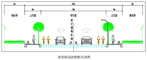 道路全长300m,道路红线宽(kuan)24m,城市支(zhi)路等级,设计车速40km/h。