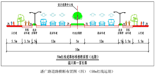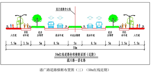 道(dao)(dao)路(lu)全长5666.64m,道(dao)(dao)路(lu)红(hong)线宽45-50m,城市次干道(dao)(dao)等级,设计车速50km/h。