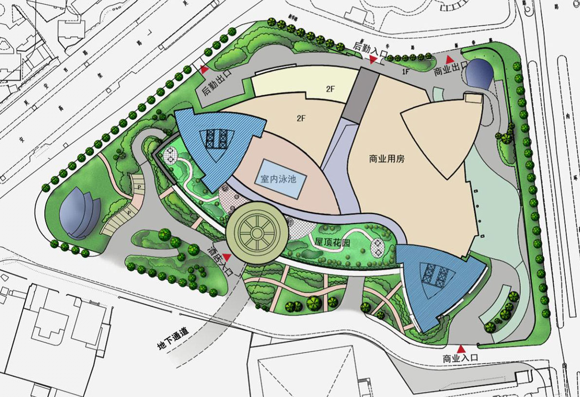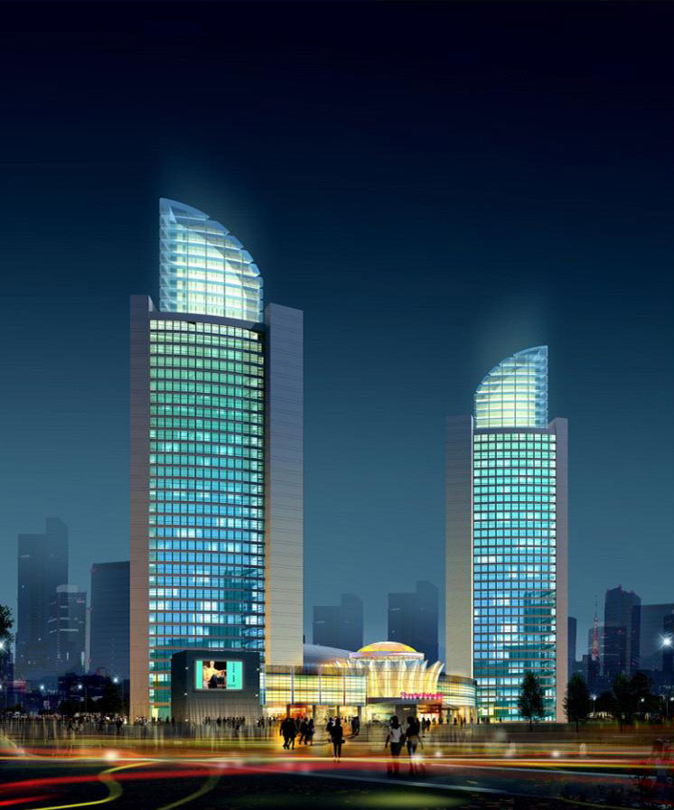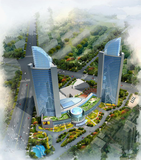 项目类型:酒店建筑 设计年代:2010年 建设地点:上海市长宁区 总面积:113820M2 设计说明:虹桥宾馆和银河宾馆是紧邻内环高架和延安路高架交叉口的姐妹楼,地处长宁区涉外贸易区内,位置优越,属虹桥商圈的中心区,但由于该两宾馆属于八十年代建筑,外观和内部设施都有许多不适应之处,这次改造重点是,一在保留二幢高层建筑本体结构的前提下,变高层外立面为通透玻璃造型,使其更为现代和时尚。二是拆除综合部裙房和设备用房,重建四层裙房,其中一,二层为精品商业和休闲餐饮配套服务设施。三层用于大堂,四层为屋顶泳池,花园和露天咖啡吧。通过改建两个酒店将在该地域形成一对十分抢眼的标志性建筑。