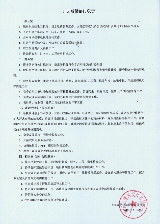 1、规章制度建设及执行、日常运营服务工作,文件起草收发及会议纪要以及其他部门不管的事务。