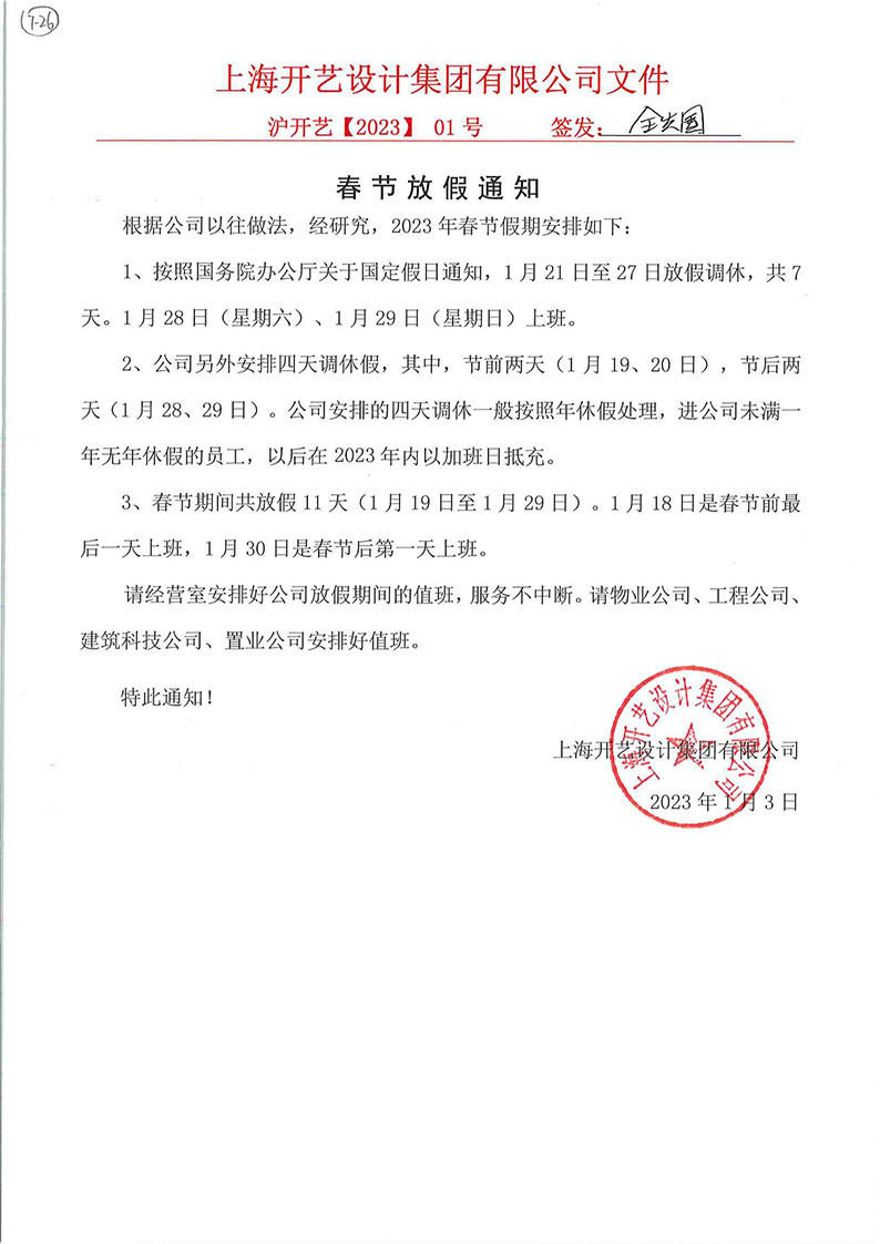 2023年春节放假通知